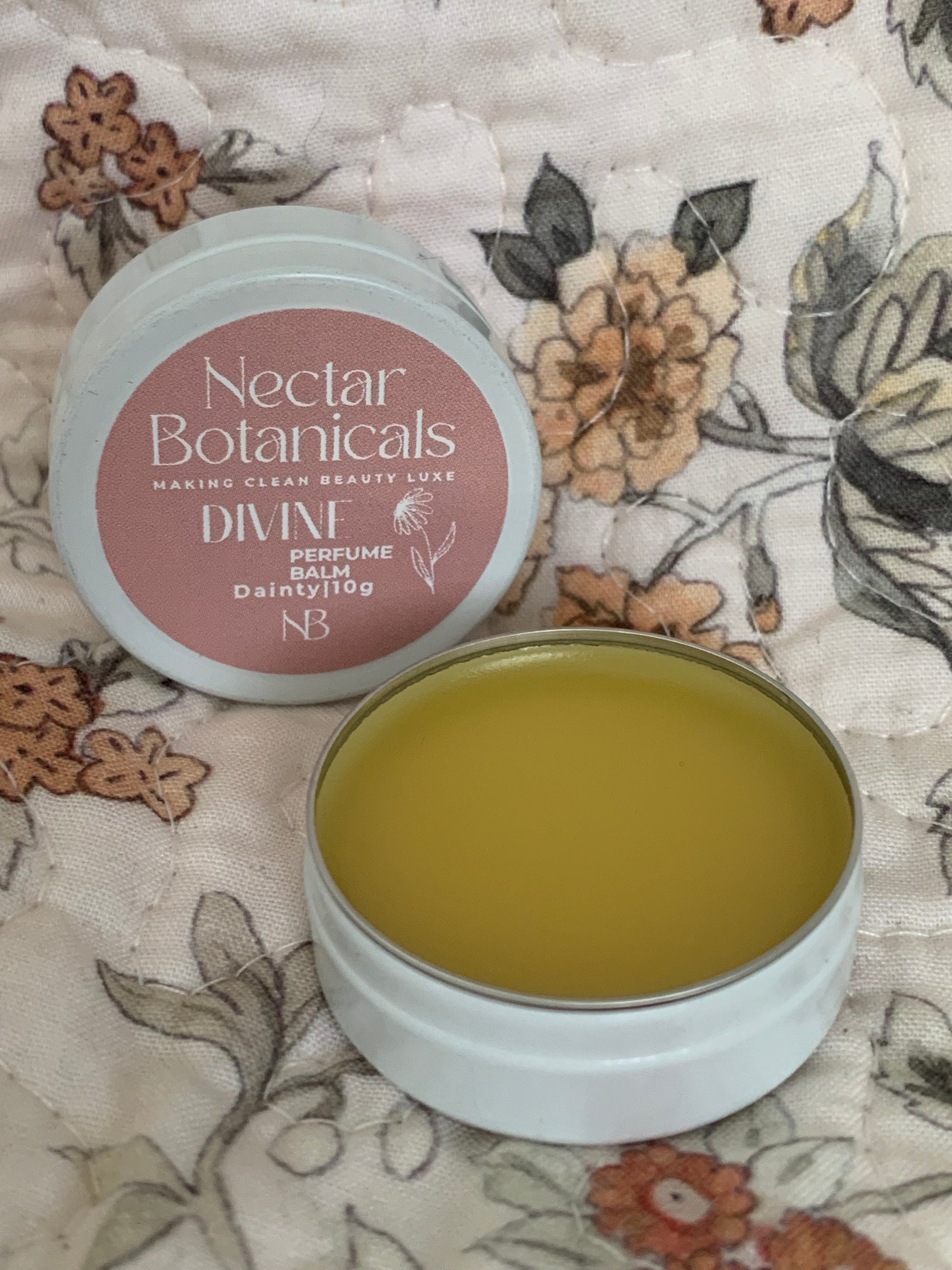 Divine Perfume Balms are highly concentrated and are packaged in a recyclable tin jar.